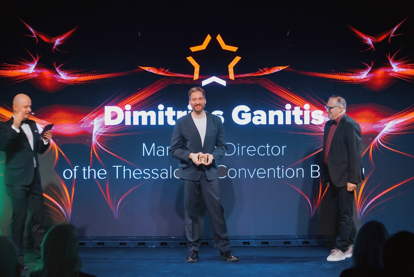 Ιδιαίτερη τιμή για τη Θεσσαλονίκη και την Ελλάδα αποτέλεσε η διπλή βράβευση του Δημήτρη Γανίτη, Managing Director του Thessaloniki Convention Bureau στα Meeting Star Awards 2025, που πραγματοποιούνται, όπως κάθε χρόνο στη Λιουμπλιάνα. Πρόκειται για τα βραβεία του δημοφιλούς περιοδικού Kongres Magazine, τα οποία είναι αφιερωμένα σε οργανισμούς, επιχειρήσεις και τους εκπροσώπους τους. Η διάκριση αυτή, που απονέμεται για πρώτη φορά σε Έλληνα, τοποθετεί τη Θεσσαλονίκη και την Ελλάδα στο επίκεντρο της ευρωπαϊκής τουριστικής και συνεδριακής σκηνής, ενισχύοντας την αναγνωρισιμότητα τους στον κλάδο. Πιο συγκεκριμένα, το έγκριτο Kongres Magazine μεταξύ 279 υποψηφίων, απένειμε στον Δημήτρη Γανίτη:
